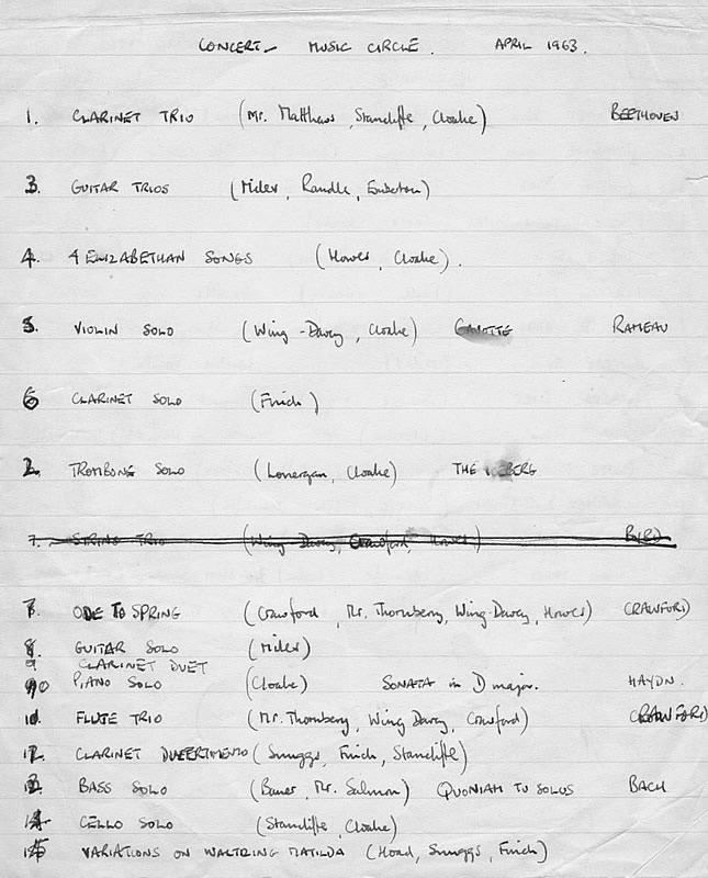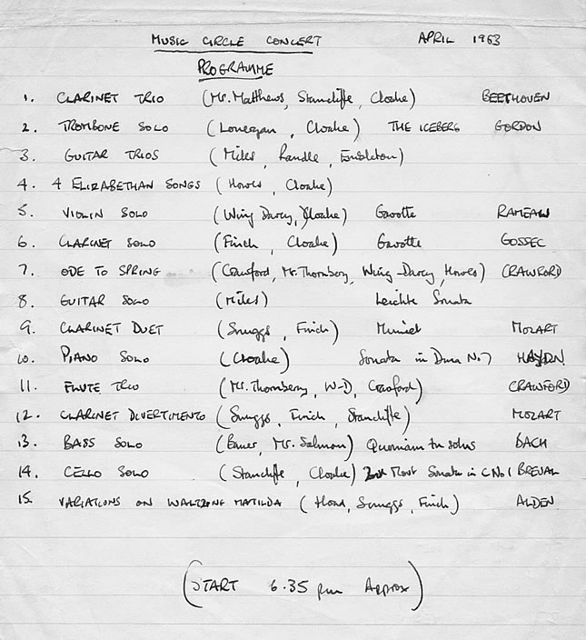 Barry Salmon's Notes for Music Circle Concert - April 1963