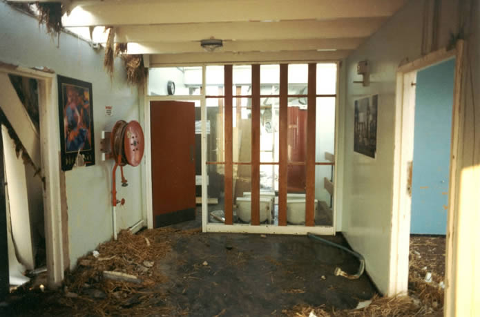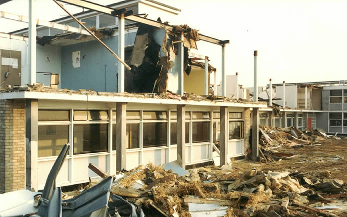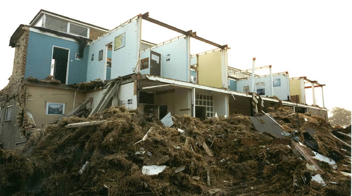 The Demolition of Halls & Johnstons - Chris Snuggs An anonymous donor sent me some photos taken in 1991 showing the sad end of Halls & Johnstons. Nothing lasts for ever, but it would have been nice for them at least to have outlived the boys whose teenage home they provided. Hansons/Orwell and the assembly-hall complex survive for the time being. I would imagine that if the IHS could afford it they would replace them with something bigger and more in keeping with their new swimming-pool and sports-hall building, but I guess that even IHS does not have bottomless pockets. Another thing strikes me. Dick Woollett told me that maintaining the building and grounds was very expensive and complicated as it is a heritage site subject to all kinds of restrictions on what COULD be done and rules about what HAD to be done (not only re the house but the whole estate), so the fact that construction of modern buildings on the site was even allowed at all is surprising, and perhaps a tribute to the commonsense and foresight of those in power at the time, the L.C.C I suppose, but there were other regulatory authorities no doubt involved. (LOTS MORE PHOTOS and commentary HERE.)