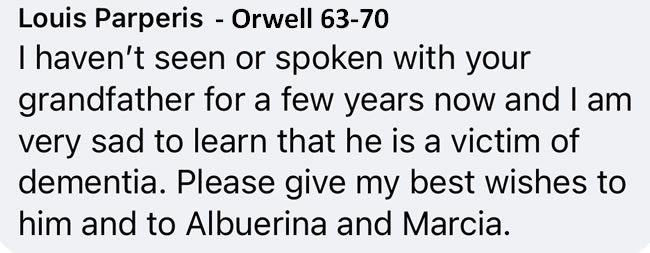 We recently learned from Andy's granddaughter Mia the sad news that Andy has dementia. Arriving at WHS in September 1958, I did not know him myself, which is obviously my loss, since I have never read or heard anything but good about either his WHS career or his life thereafter.