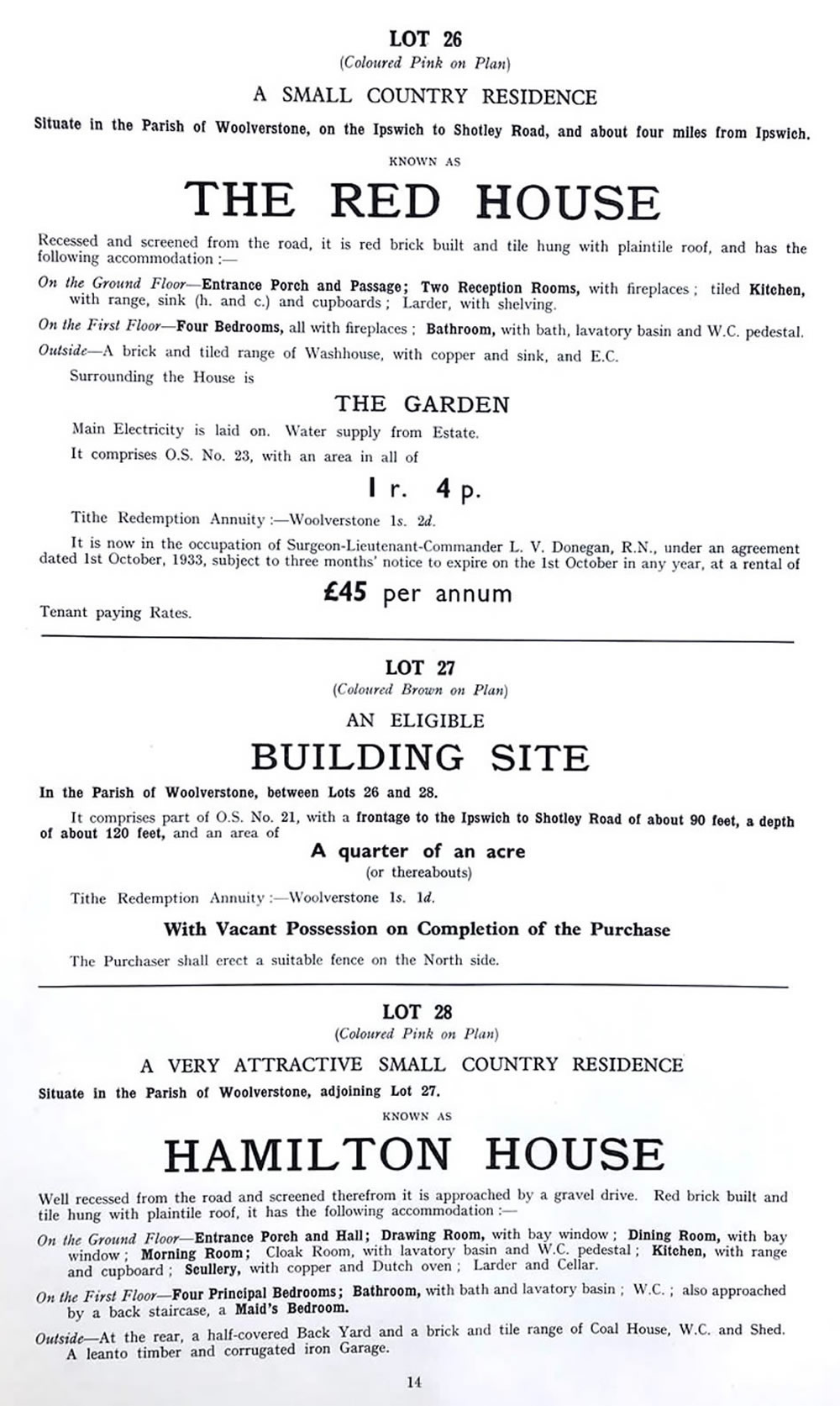 The Red House, Hamilton House, The Grange, Shotley House Farm |