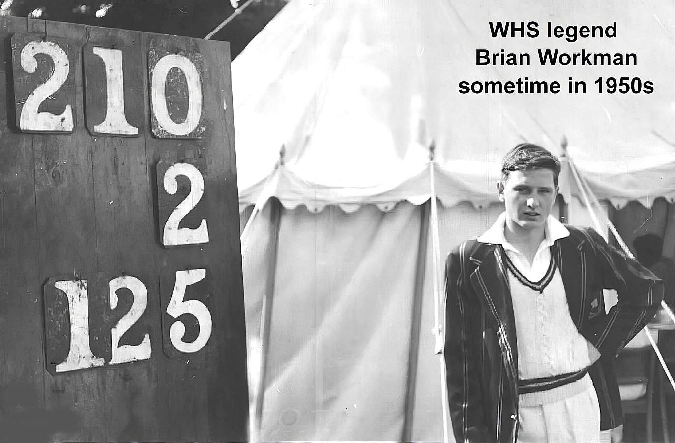 Fourteen matches were played. Five were won, two were lost, four were drawn, and in three games rain stopped play. In many ways it was a very satisfactory season, due in no small measure to Workman's captaincy and individual performance, but also because of the development of younger players who came into the eleven for their first season. Miller and Townson, for example, bowled very steadily and show great promise for the future; and Markham not only kept wicket adequately but also made a valuable contribution as a batsman. Workman scored 501 runs (including two centuries) for an average of 41.7; Smith, with 220 runs, had an average of 27.5; Byrde a total of 204, average 25.5; Markham scored 142 for an average of 17.7. Miller, Townson, Davies, Workman, McCulloch, and Byrde shared the bowling. The bowling, perhaps, still lacks that extra "bite", but there are signs that it may cope well with the stronger opposition we hope to have next season, when we shall be playing the first elevens of some schools whose second elevens we played this past season. The season opened with three Colours in the side: Workman, McCulloch and Davies; and Colours were awarded to Smith and Byrde. Workman is to be congratulated on scoring the first century in a school match, on his captaincy of the Suffolk Grammar Schools XI, and his vice-captaincy of (and excellent performance with) the Suffolk Young Amateurs' XI. (Chris Snuggs: Brian was also one of the most gifted and by all accounts nicest boys ever to pass through WHS. SEE HERE) |