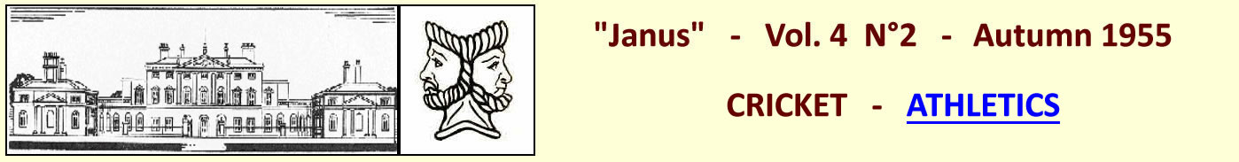 We can, I hope, look forward to a good 1956 season. Most of the recognised bats will be with us, and many others are showing much promise. The bowling, perhaps, lacks bite and aggressiveness, but there are younger boys who no doubt will be knocking on the door of the team. It is clear that success in cricket comes more slowly than in other games, and so it was very encouraging to see the fruits this year of our early struggles.