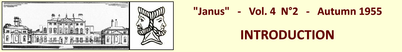 LOOKING BACK to the Editorial of Spring, 1953 we found some interesting statements. Just previous to the publication of "Janus" it had been decreed that a certain large sum was to be spent on building new classrooms, Houses and an assembly-hall, the ultimate aim being to provide adequate room for 360 boys. These new buildings were expected to be finished in 1956. 1955 draws to a close and with 293 already in the school, the new school buildings are as yet still on blueprints. One could perhaps be expected to despair, but with all due respect to the editor of "Janus" 1959, I assert that work will start on the main buildings before the New Year and will end in approximately three years.
