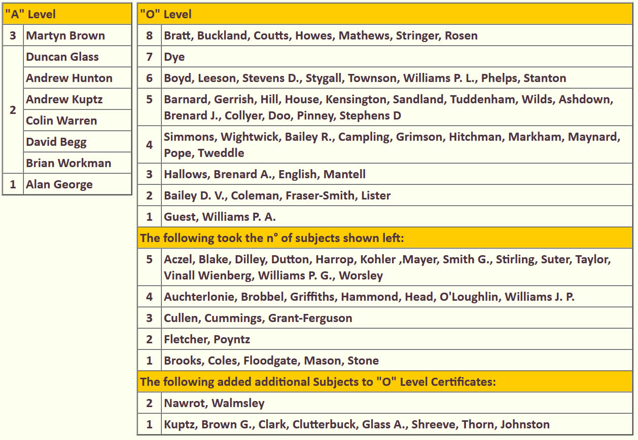 GENERAL CERTIFICATE OF EDUCATION - THE FOLLOWING BOYS passed in the number of subjects shown left.