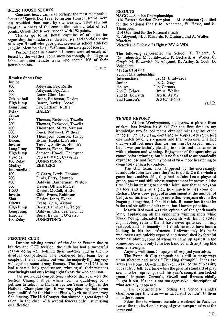 Inter-House Sports - Fencing Club - Tennis Report