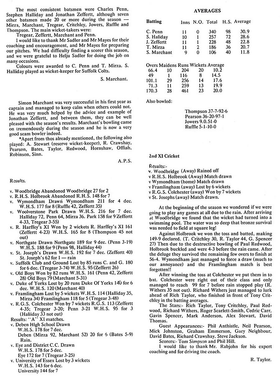 The WHS Parents' Association - Old Boys' Notes