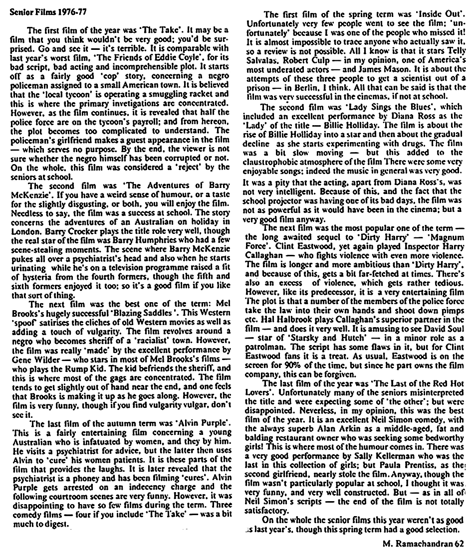 OUR FIRST film this term was held on Saturday, 15th February. The title was "A day to remember", and was about a party of men and women who went to France for a day and their activities while there. Romance was frequent, but on the whole the film, a comedy, was quite humorous, especially when one of the party tried to join the Foreign Legion. Unfortunately, during this film the sound track became slightly blurred and hearing became rather difficult.