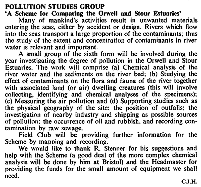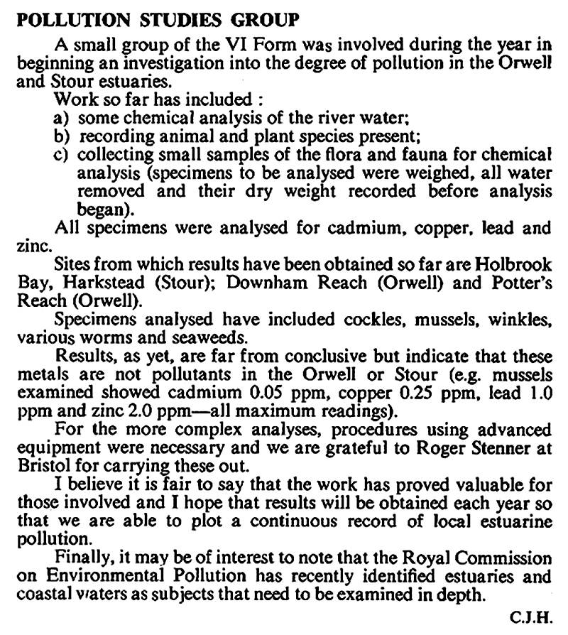 The WHS Pollution Studies Group