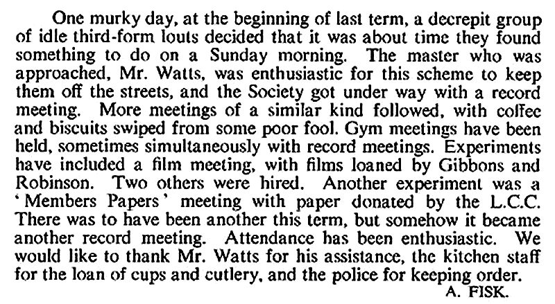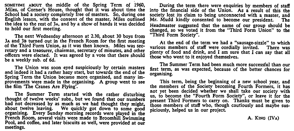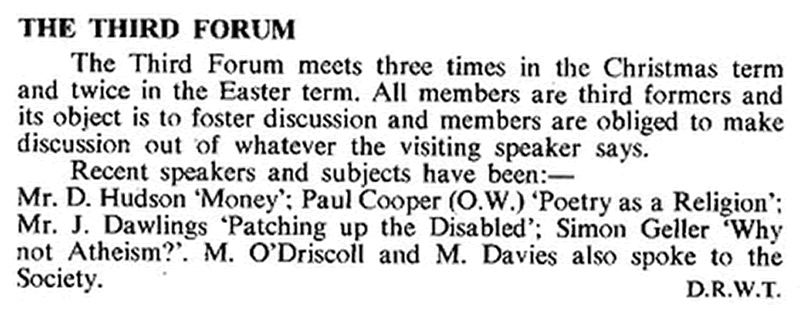The Third Form Society (and Forum in 1973)
