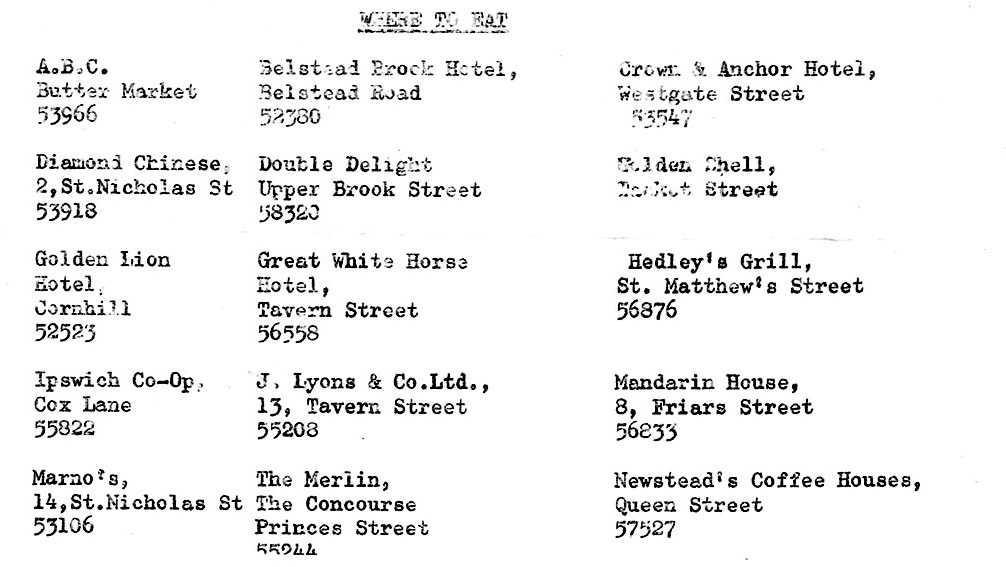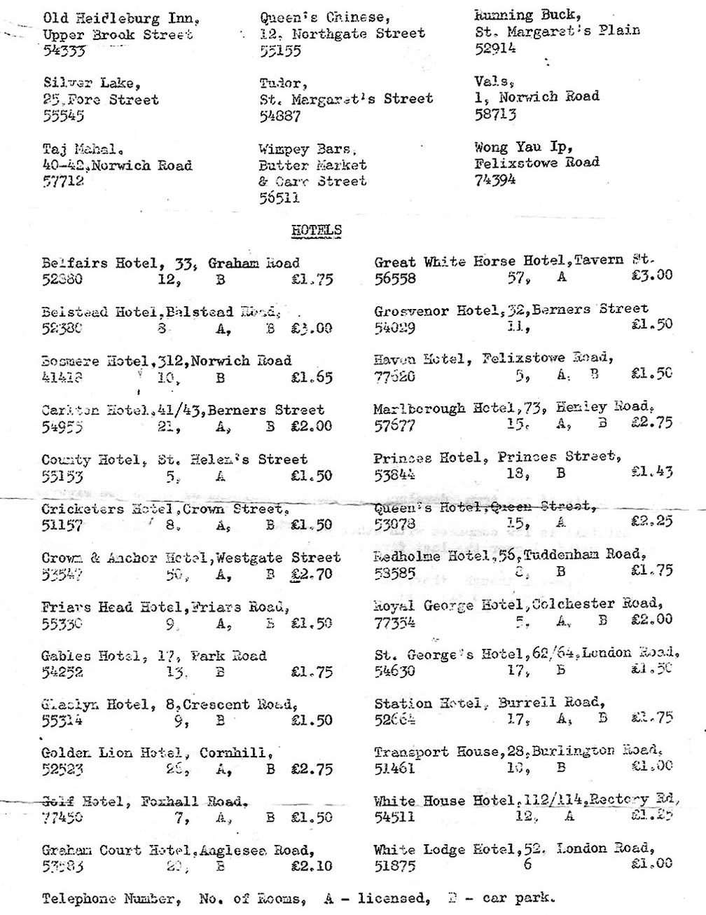 The following information is intended for those parents to whom Ipswich is still fairly new and it is hoped that it will provide them with knowledge that will enable then to better find their way about and to make their visits in the town more enjoyable. Most of the information is selected from official publications issued by the Corporation, so we have no personal experience of the hotels and eating places mentioned, and it is also possible that prices are now higher than those shown on the list.