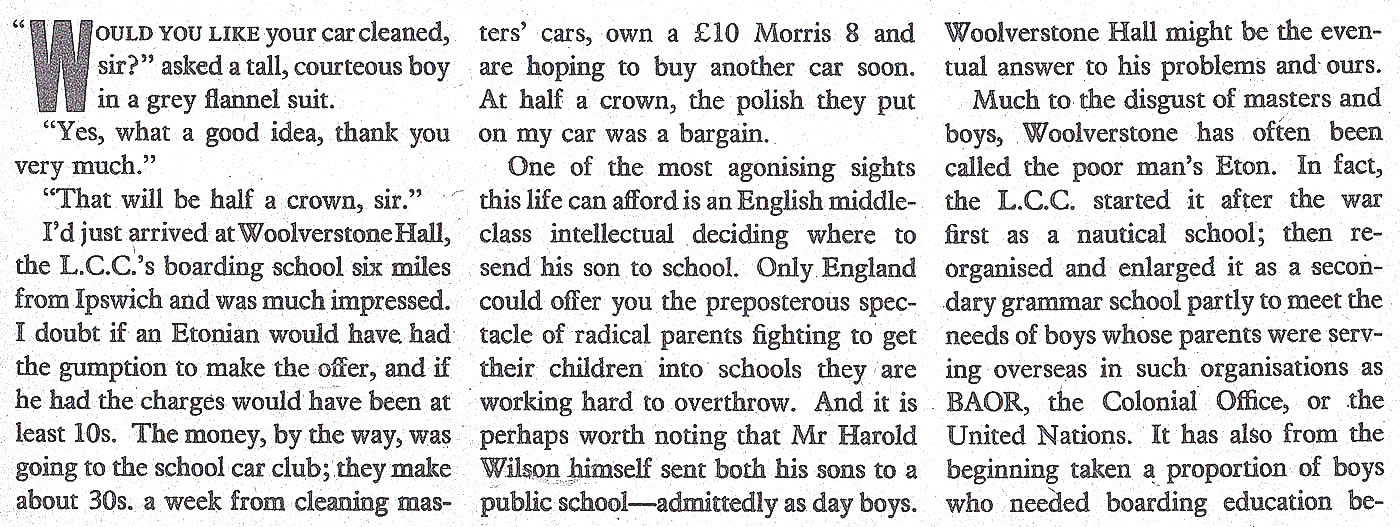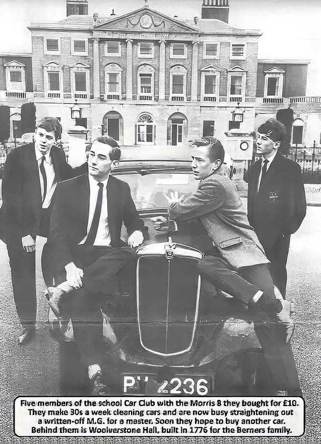 Jo Briggs writes: "As usual the newspaper got it wrong, no money involved. When teaching us to drive the tractor when I was about 14, Dr. Hassell-Smith was annoyed with me because I just put it in 4th gear and moved off. He had been telling us to start in first, stop, put it in second, move off, stop; and so on, I argued that it was pointless as - being a tractor - it was so low-geared that on a tarmac road anything other than 4th was unnecessary. I think, as a consequence, he thought I was getting above myself, so one day he came to me saying that the car club could have the Morris if I could get it back to the workshop. On asking what was wrong with it I was told that the clutch didn't work. No problem: I just started the car with in gear and drove it back to the CC, changing gear without the use of the clutch - easy to do on a non-syncromesh gearbox and something I had been doing since I was 12/13.