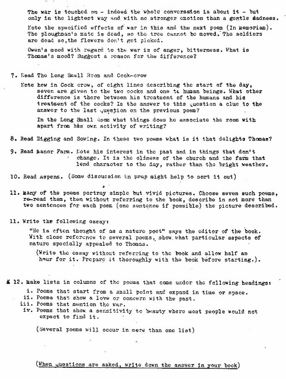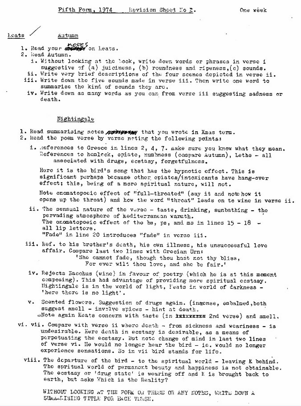 WHS 1974 Vth Form Study Notes