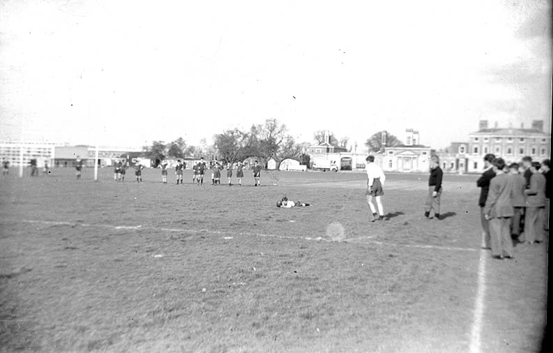 "Placekick" - from Joe Briggs. Is that Joe? Who's the ref? House match? circa 1957?