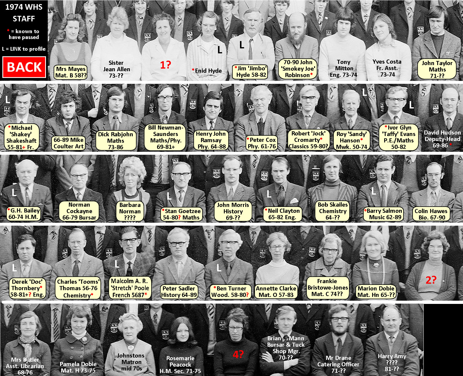 The WHS Story - 1974 Staff on School Photo