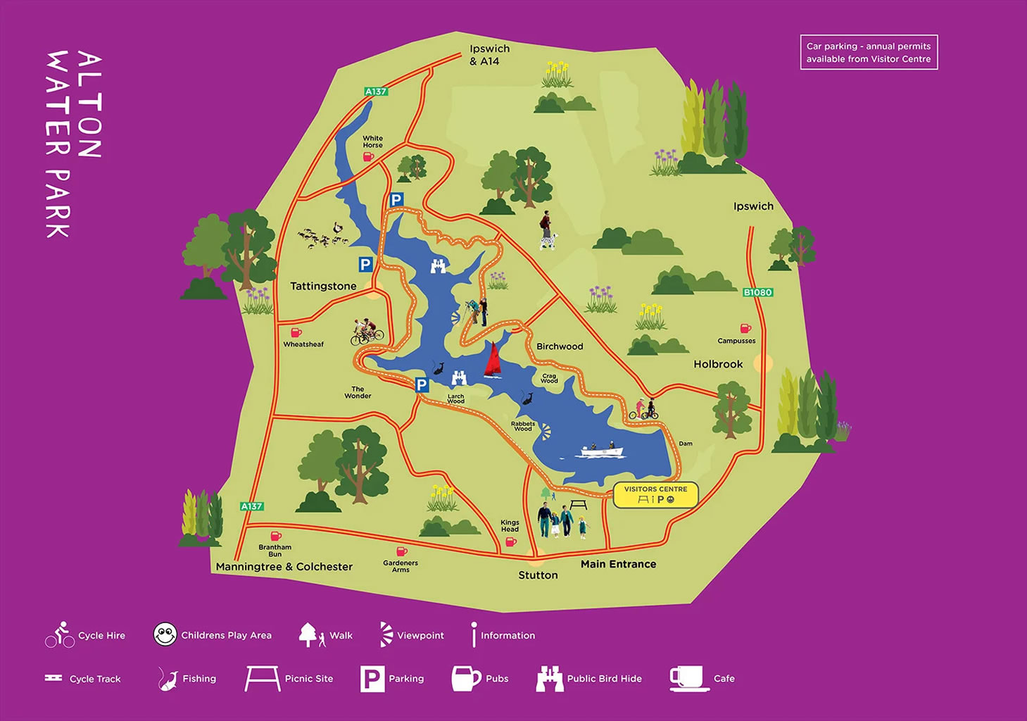 Today Alton Water continues to supply water to a large part of Suffolk, including Ipswich, Stowmarket, Felixstowe, and is also a beautiful setting for the general public to enjoy. Between 85% and 95% of the water goes to Ipswich and Felixstowe via the Wherstead reservoir and the Orwell Bridge with the remainder fed to the villages of the Shotley Peninsula and south Suffolk. |