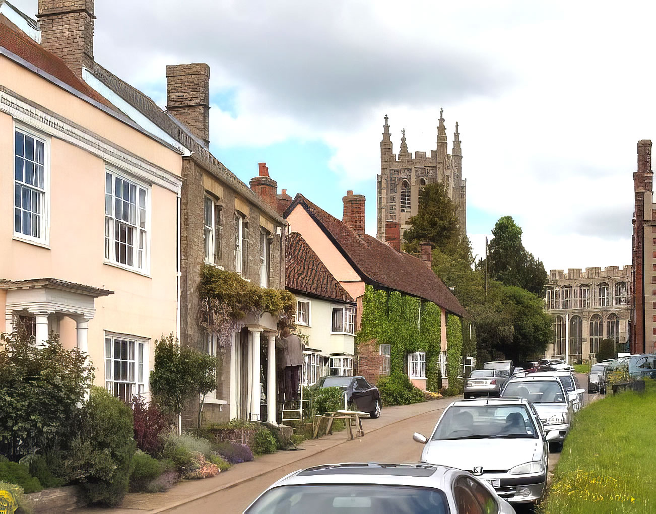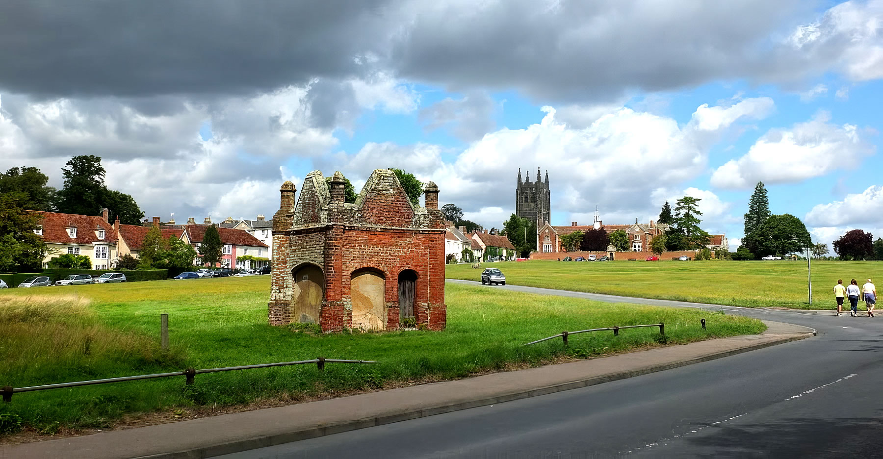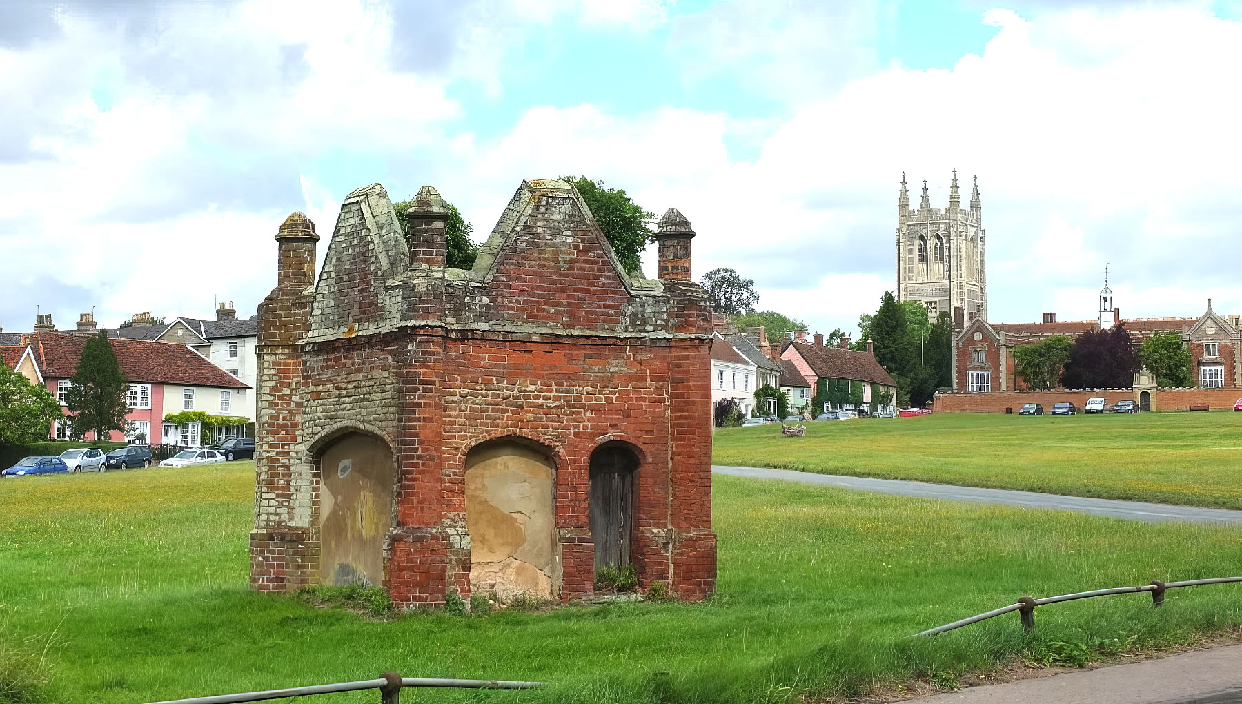 Its name is derived from the nature of the village's layout (originally concentrated along a 3-mile stretch of a single road) and the Mill ford crossing the Chad Brook (a tributary of the River Stour). History: Prehistoric finds discovered in 2011 have shown that early settlement of what is now known as Long Melford dates back to the Mesolithic period, up to 8300 BC. In addition, Iron Age finds were made in the same year, all within the largely central area of the current village. The Romans constructed two Roman roads through Long Melford, the main one running from Chelmsford to Pakenham. Roman remains were discovered in a gravel pit in 1828, a site now occupied by the village's football club. In 1997, Roman finds were uncovered including complete skeletons (with one being in a stone coffin), part of the original Roman Road, and complete samian ware pottery in a villager's garden. In June 2013, some archaeological evidence of a Saxon and Bronze Age settlement in the northern area of the village was discovered by Carenza Lewis and her team from Cambridge University during a student dig. During the Middle Ages, the village grew and gained a weekly market and an annual fair in 1235. Long Melford survived the Black Death in 1348-9, and was a brief stop-off in the Peasants' Revolt in 1381. By the early 15th century, the manor of Kentwell belonged to the Clopton family. John Clopton was arrested in 1461 and charged with treason. He was spared execution, released and returned to Kentwell. There he organised and largely helped to pay for the rebuilding of the parish church, a notable example of a wool church. During this time the wealth of the parish was increasing, with most of the inhabitants being free men, renting their homes and lands. Guilds were founded, and weaving cloth became a key part of the village's economy. In the official inspector's returns for the year 1446, there were as many as 30 named weavers in Long Melford, who between them produced 264 finished "cloths". Following the Dissolution of the Monasteries, Henry VIII granted the manor to Sir William Cordell. Modern Era: In 1604, an epidemic of the plague arrived in Melford and 119 people died between the months of May and September. During the English Civil War, a Puritan mob of over one thousand arrived in Melford pursuing Elizabeth Savage, Countess Rivers, a staunch Catholic and Royalist, from her property in St Osyth to her Suffolk estate at Melford Hall. The hall was sacked and plundered and the Countess fled to Bury St Edmunds, then to London where eventually she was imprisoned for debt and died a pauper. By the end of the 17th century, cloth production had once again become important in the area as many new entrepreneurs started to produce a range of materials known as 'Bays and Says', similar to baize and serge. These were lighter, cheaper types of cloth than the traditional woollen broadcloths that had been made in the 15th and 16th centuries but, once again, many of the cloth merchants became extremely wealthy and for some years prosperity returned to Melford. Soon after the beginning of the 19th century, a range of new industries such as horsehair weaving, an iron foundry, a flax works and coconut matting production started in Melford. By 1851, there were three horsehair manufacturers in Melford employing over 200 men, women and children. Prince Bertie, who later became King Edward VII, together with Princess Alexandra visited the village in November 1865, and large archways were constructed at key points in their honour to welcome them in, with the crowds. During the 1880s, a series of wage cuts in the coconut industry caused widespread anger and eventually resulted in strike action. Feelings ran high, culminating in a riot breaking out on polling day in December 1885, during which considerable damage was caused throughout the village. Troops were summoned from Bury St Edmunds to restore order; they arrived by train and marched from Melford station to read the Riot Act from the steps of the Police Station. In World War I, hundreds of village men volunteered to serve their country. They joined many diverse army regiments, such as the Scots Guards, Prince of Wales Regiment, Royal Engineers, the Suffolk Regiment, serving in Gallipoli, Ypres, the Somme and numerous military campaigns. Other men fought in the Royal Navy, and the newly formed Royal Flying Corps. The personal stories of these 1,100 men and how the war affected the village is found in Long Melford and the Great War – The Stories of a Thousand Lives by David Gevaux. In October 1920, the village war memorial was unveiled, and is located at the entrance of the Holy Trinity Church. During World War II, Long Melford was a location for American and Allied service personnel, who flew B24 and B17 aircraft from two large bomber stations, RAF Lavenham and RAF Sudbury, located nearby.Troops from, amongst others, the Berkshire and Black Watch Regiments, were billeted and garrisoned within the village. Injured airmen, troops from the D-Day landings and prisoners of war were treated at the large nearby 136th Station Hospital, located between Long Melford and Acton. Band leader Glenn Miller and his orchestra briefly visited Long Melford and played to injured airmen, invited locals and hospital staff at the 136th hospital in 1944. German prisoners of war were interned at a camp near the 136th Station Hospital, and Italian prisoners were located at a camp at the nearby village of Borley. USAF personnel from bases at Lakenheath, Mildenhall, and Wethersfield airbases often lived within Long Melford. By the end of the war, two B24 Liberators, one B17 Flying Fortress and one RAF de Havilland Mosquito had crashed in the parish with over twenty persons killed or injured. Numerous pillboxes and temporary gun emplacements were constructed in the village during the war, and in 2012 a previously unknown underground bunker room was located. According to the Remembrance Plaque at Hol