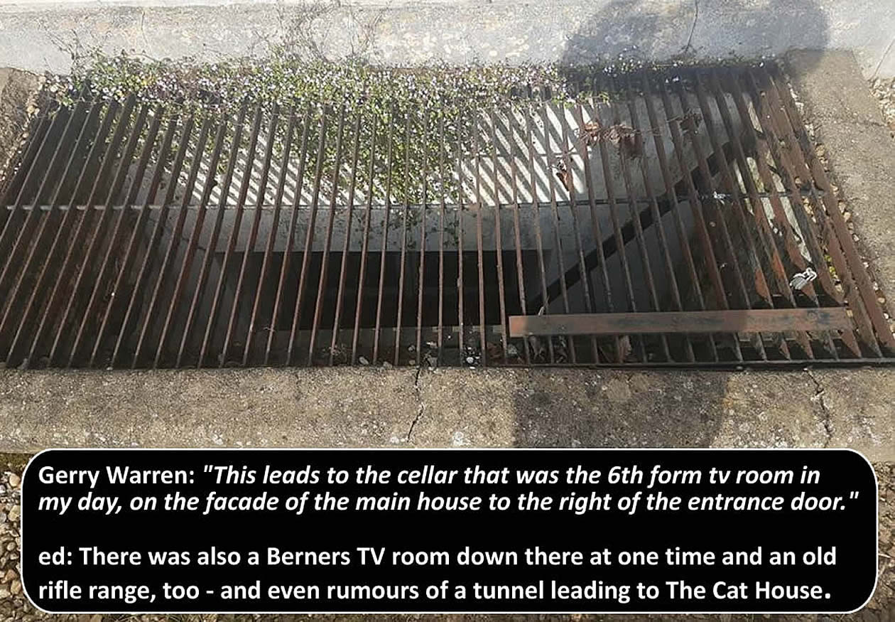 Alex O'Sullivan - Halls 87-88: “The 22 firing range was between the two wings under the drive. There used to be two glass windows (the size of a saucer) either side of the flower bed in the grass circle area, that shone down into that range. During my time there was no access from the main cellar into the firing range. We accessed it from the left wing of the house which was at my time George Meese's house (unsure of the spelling).”