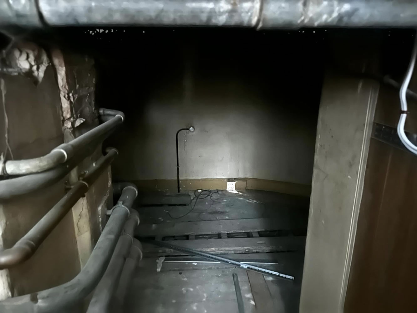 This is a somewhat spooky area described in the Savills 1990 Sales Details as 'an inter-floor compartment housing the workings for the wind vane'.