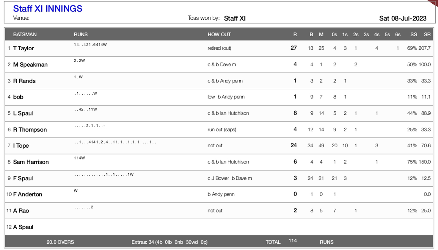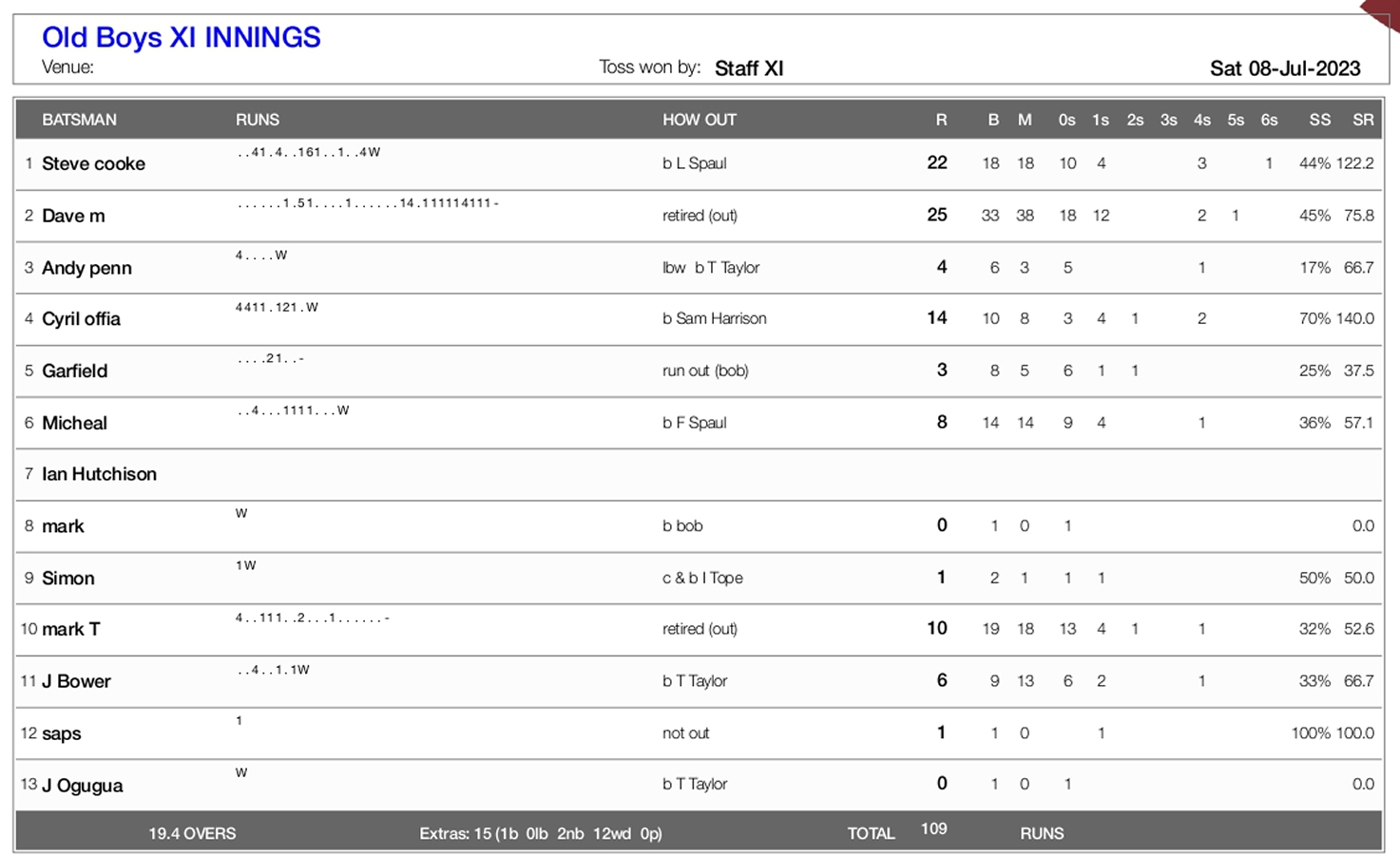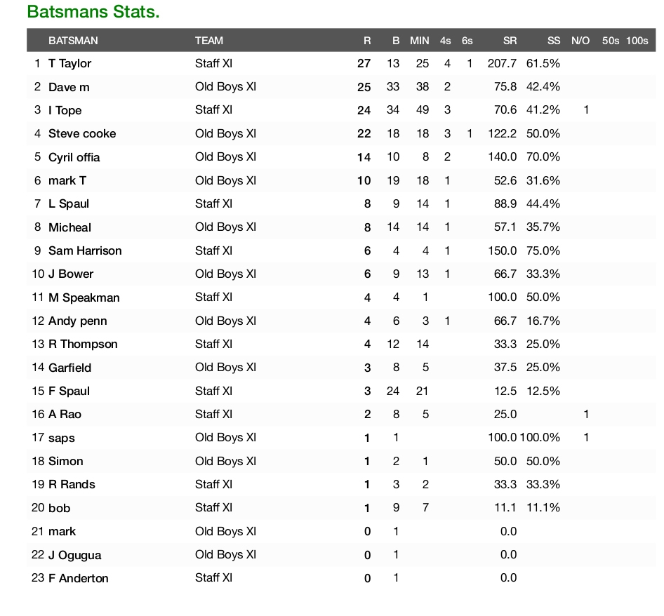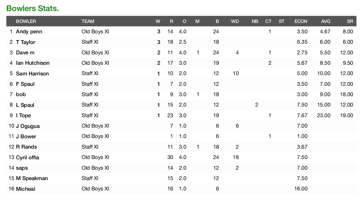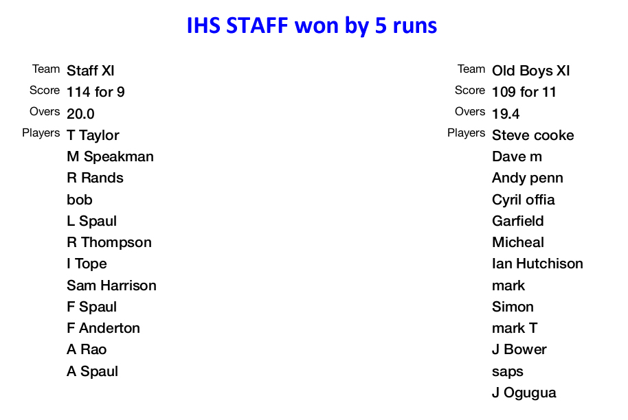 WHS-IHS Reunion Cricket Scorecard