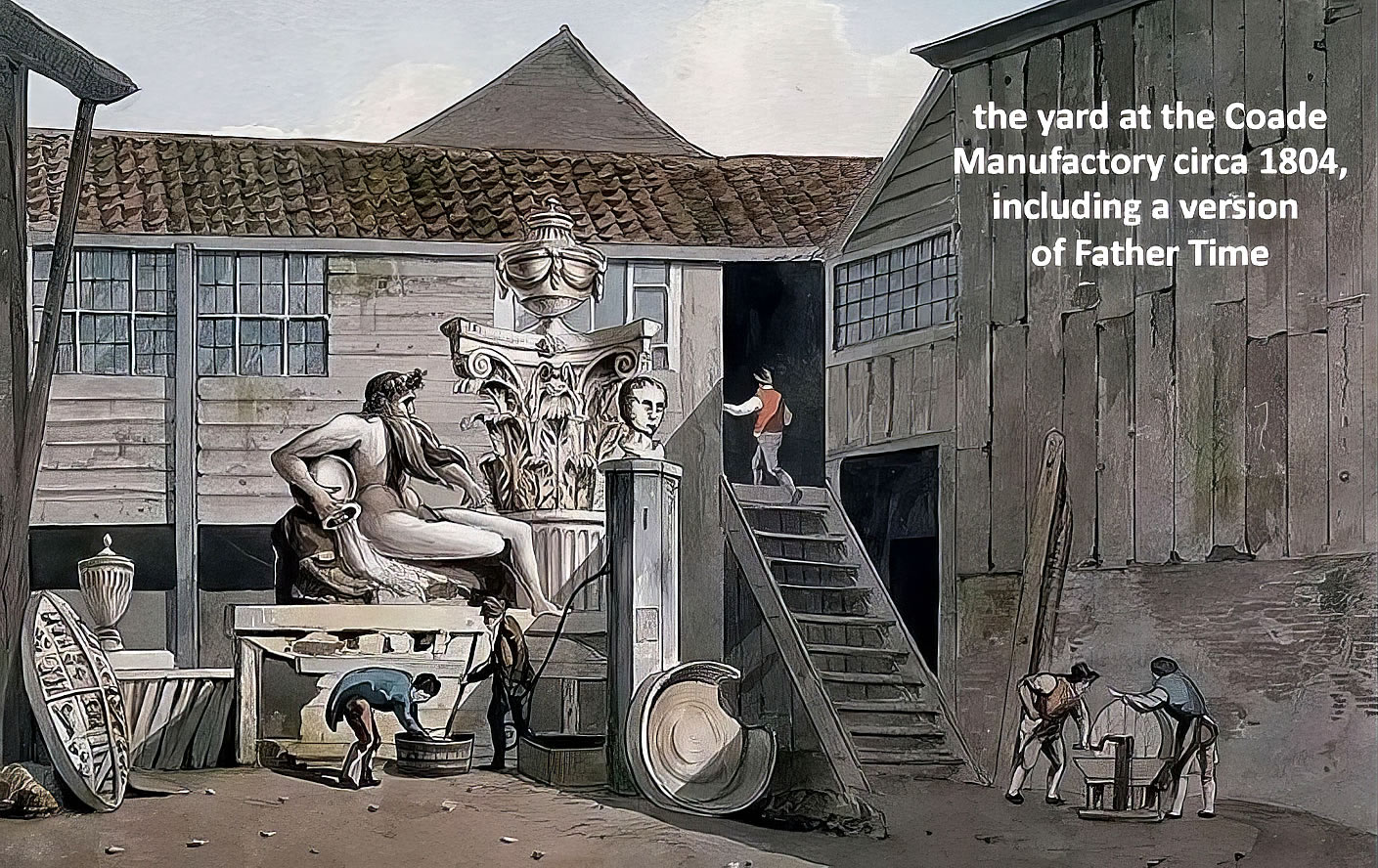 Eleanor Coade (3 June 1733 – 18 November 1821) was a British businesswoman known for manufacturing Neoclassical statues, architectural decorations and garden ornaments made of Lithodipyra or Coade stone for over 50 years from 1769 until her death. She should not be confused or conflated with her mother, also named Eleanor. Lithodipyra ("stone fired twice") was a high-quality, durable moulded weather-resistant, ceramic stoneware; statues and decorative features from this still look almost new today. Coade did not invent 'artificial stone', as various inferior quality precursors had been both patented and manufactured over the previous forty years, but she probably perfected both the clay recipe and the firing process. She combined high-quality manufacturing and artistic taste, together with entrepreneurial, business and marketing skills, to create the overwhelmingly successful stone products of her age. She produced stoneware for St George's Chapel, Windsor; The Royal Pavilion, Brighton; Carlton House, London and the Royal Naval College, Greenwich. Shortly after her death, her company produced a large quantity of stoneware used in the refurbishment of Buckingham Palace. Born in Exeter to two families of wool merchants and weavers, she ran her business, "Coade's Artificial Stone Manufactory", "Coade and Sealy" and latterly "Coade" (by appointment to George III and the Prince Regent), for fifty years in Lambeth, London. A devout Baptist, she died unmarried in Camberwell. In 1784 an uncle, Samuel Coade, gave her Belmont House, a holiday villa in Lyme Regis, her late father's town of origin. She decorated the house extensively with Coade stone. Coade stone or Lithodipyra or Lithodipra (Ancient Greek: λίθος/δίς/πυρά, lit. 'stone fired twice') is stoneware that was often described as an artificial stone in the late 18th and early 19th centuries. It was used for moulding neoclassical statues, architectural decorations and garden ornaments of the highest quality that remain virtually weatherproof today. Coade stone features were produced by appointment to George III and the Prince Regent for St George's Chapel, Windsor; The Royal Pavilion, Brighton; Carlton House, London; the Royal Naval College, Greenwich; and refurbishment of Buckingham Palace in the 1820s. The product (originally known as Lithodipyra) was created around 1770 by Eleanor Coade, who ran Coade's Artificial Stone Manufactory, Coade and Sealy, and Coade in Lambeth, London, from 1769 until her death in 1821. It continued to be manufactured by her last business partner, William Croggon, until 1833. History: In 1769, Mrs Coade bought Daniel Pincot's struggling artificial stone business at Kings Arms Stairs, Narrow Wall, Lambeth, a site now under the Royal Festival Hall. This business developed into Coade's Artificial Stone Manufactory with Coade in charge, such that within two years (1771) she fired Pincot for "representing himself as the chief proprietor". Coade did not invent artificial stone. Various lesser quality ceramic precursors to Lithodipyra had been both patented and manufactured over the forty (or sixty) years prior to the introduction of her product. She was, however, probably responsible for perfecting both the clay recipe and the firing process. It is possible that Pincot's business was a continuation of that run nearby by Richard Holt, who had taken out two patents in 1722 for a kind of liquid metal or stone and another for making china without the use of clay, but there were many start-up artificial stone businesses in the early 18th century of which only Coade's succeeded. The company did well and boasted an illustrious list of customers such as George III and members of the English nobility. In 1799, Coade appointed her cousin John Sealy (son of her mother's sister, Mary), already working as a modeller, as a partner in her business. The business then traded as Coade and Sealy until his death in 1813, when it reverted to Coade. In 1799, she opened a show room, Coade's Gallery, on Pedlar's Acre at the Surrey end of Westminster Bridge Road, to display her products. In 1813, Coade took on William Croggan from Grampound in Cornwall, a sculptor and distant relative by marriage (second cousin once removed). He managed the factory until her death eight years later in 1821 whereupon he bought the factory from the executors for c. £4000. Croggan supplied a lot of Coade stone for Buckingham Palace; however, he went bankrupt in 1833 and died two years later. Trade declined, and production came to an end in the early 1840s. The ease with which the product could be moulded into complex shapes made it ideal for large statues, sculptures and sculptural façades. One-off commissions were expensive to produce, as they had to carry the entire cost of creating a mould. Whenever possible moulds were kept for many years of repeated use. Manufacture: Its manufacture required extremely careful control and skill in kiln-firing over a period of days, difficult to achieve with its era's fuels and technology. Coade's factory was the only really successful manufacturer. The formula used was: