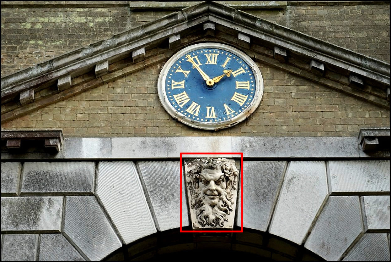 Woolverstone Hall comprises a central block with flanking wings connected by colonnades. The central block is of three storeys: a rusticated basement, first floor and attic, and has at its front centre a pediment supported by four Ionic columns. The house is built of Woolpit brick, with Coade stone ornamentation, an example of which is shown below.