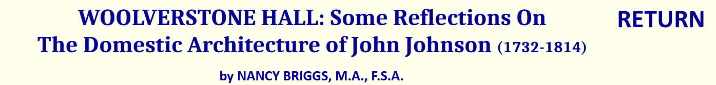 In 1777 JOHN JOHNSON of Berners Street, St Marylebone, exhibited at the Society of Artists a drawing of Woolverstone Hall, the seat of William Berners. The Woolverstone Hall estate had been originally leased by William Berners (1709- 1783) from Knox Ward (d. 1741). Berners purchased the estate out of Chancery for £14,000 c. 1773; the original house probably stood on the site of the present stables. Woolverstone Hall is said to have been erected in 1776, but the building is not documented, apart from the unsigned and undated plan now at Woolverstone Hall School (Figs. 1 & 2). Johnson's association with Berners provides the earliest definite information about the architect's career. He was born in Leicester on 22 April 1732, the son of John and Frances Johnson, and is possibly to be identified with the John Johnson, eldest son of John Johnson, joiner, who was admitted a freeman of Leicester on 22 April 1754. At the time of Johnson's death in 1814, it was stated in the Leicester journal that: "He left this town in early life possessing little more than strong natural abilities, which soon found their way in the Metropolis." By 1766 Johnson was involved in the development of the small Berners estate in St Marylebone; its frontage extended along Oxford Street from Wells Street to Rathbone Place, and as far north as the Middlesex Hospital. Development of the Berners estate had begun in 1738. The existing streets on the estate were laid out between 1750 and 1753 ; the first lease in Newman Street was dated 1750, with Charles (now Mortimer) Street following in 1759 and Berners Street in 1763. Leases of July and August 1766 from Berners to John Johnson of King's Street, Westminster, carpenter, relate to houses already erected by Johnson in Newman Street and recite articles of agreement dated 15 February 1766. Johnson also built houses in Berners Street, where he lived from 1767 to 1786, and Charles Street, where he held building leases from 1771. None of Johnson's houses on the Berners estate has survived, but 62-63 New Cavendish Street on the Portland estate dates from 1775 7 and has fine interiors. William Chambers was also closely associated with the development of Berners Street, but William Berners may well have been influenced by cost in preferring Johnson as the architect of Woolverstone Hall. Earlier, Johnson had been recommended to John Strutt of Terling Place as 'exceedingly honest, cheap and ingenious - what would you more?' Woolverstone Hall cannot claim to be Johnson's earliest country house; it was preceded by Terling Place, Essex (1771-3), Sadborow, Dorset (1773-5), and possibly by Killerton, Devon, and Clasmont, Glamorganshire. The design of Woolverstone Hall is more ambitious than most of Johnson's domestic exteriors; it consists of a pedimented 7-bay centre block of Woolpit brick, faced with Portland stone on the ground floor, and one-and-a-half-storey wings. The wings are shown on the plan (Fig. 1) drawn up for William Berners (d. 1783), but were almost certainly refaced and provided with attached Roman Doric porticoes by Thomas Hopper in 1823. The engraving in "Excursions in the County of Suffolk" appears to show Johnson's original design for the wings with a Venetian window on the ground floor. The outer niches in the wings shown in the early photograph may date from Johnson's time rather than Hopper's; the present ground-floor windows date from after 1937. Johnson's plan was completed by outer courts containing coal vaults in the left wing and a drying-yard on the right (Fig. 1). Hopper was probably responsible for the one-storey ranges with Roman Doric columns on the garden front, linking the house to the wings. The one-bay two-storey blocks, which are not shown on early photographs were added to the centre block early in the 20th century.