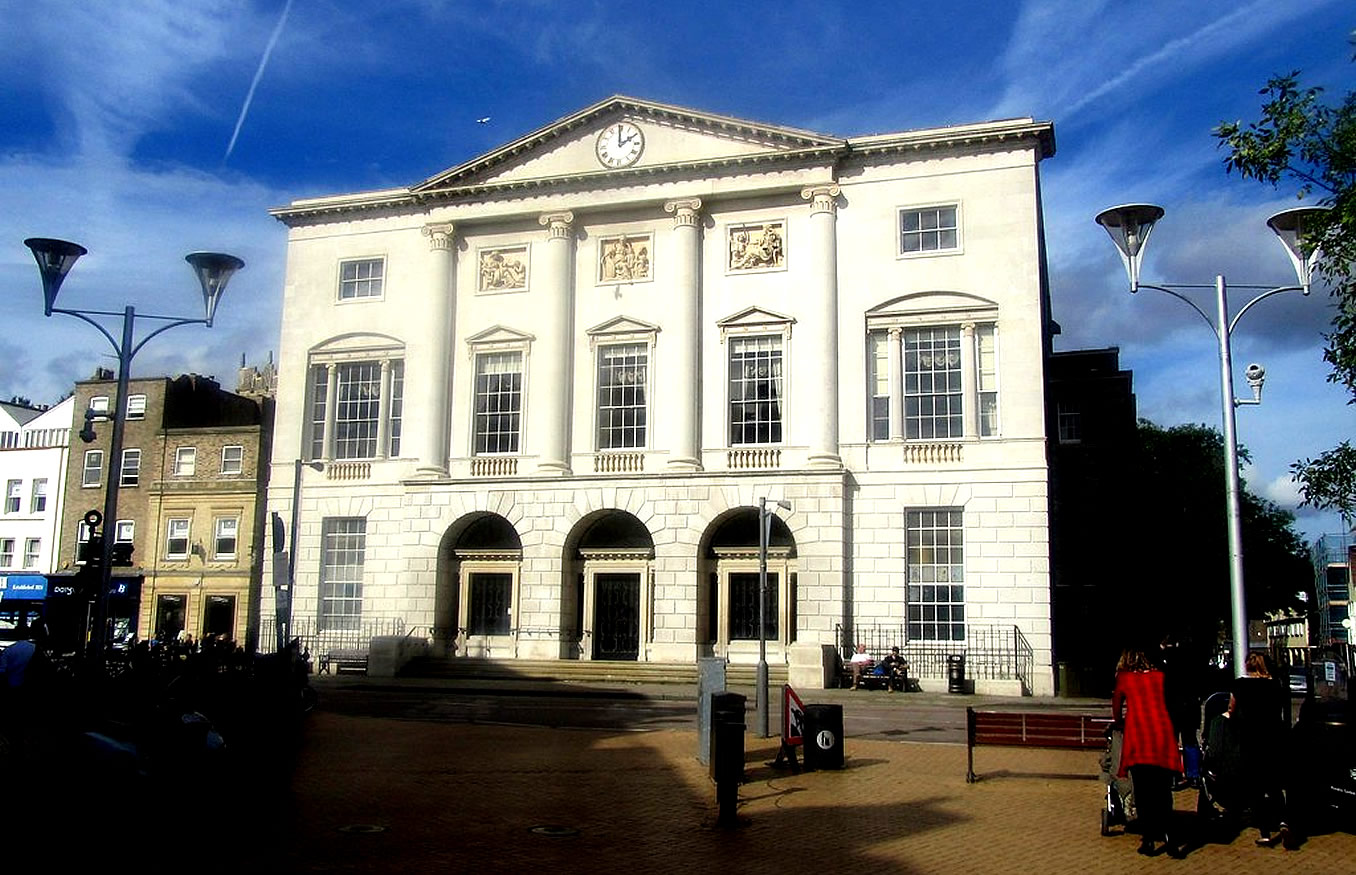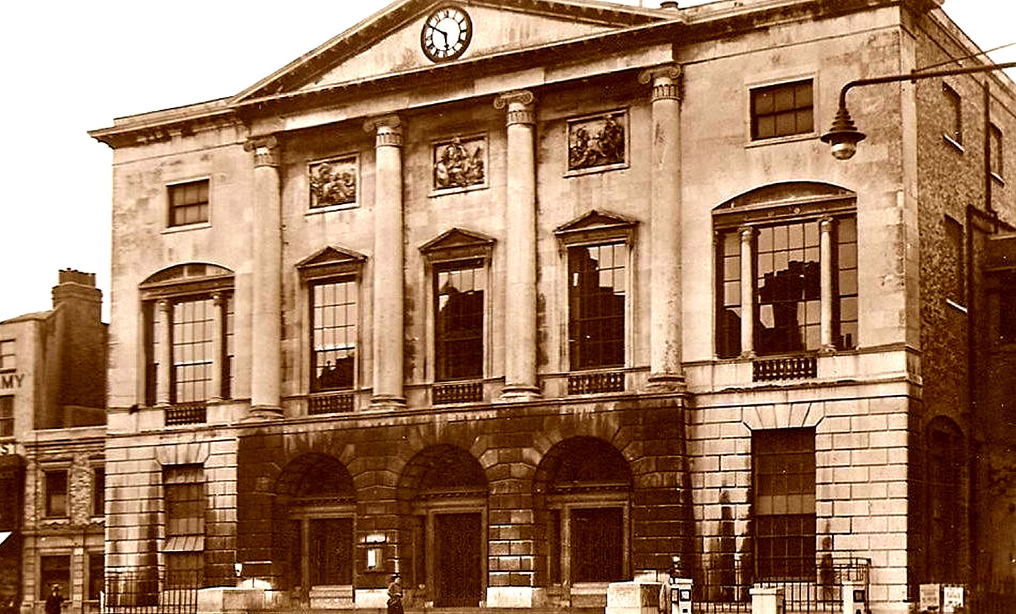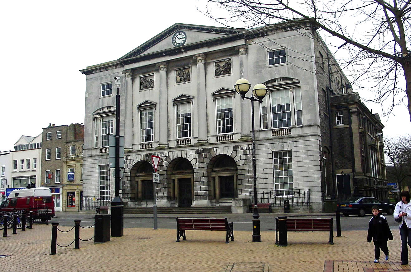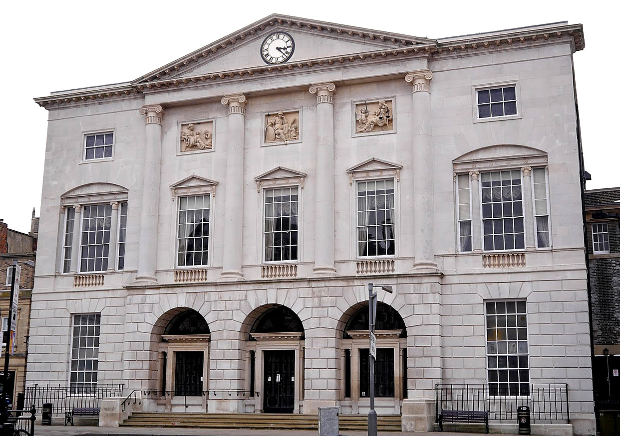 The current building was commissioned to replace an ageing 16th sessions house at the north end of the High Street which hosted the quarter sessions and which had been supplemented by a smaller building which hosted the nisi prius court. The new building, which was designed by John Johnson in the classical style with a Portland stone façade, opened in July 1791. The design involved a symmetrical main frontage with five bays facing onto Tindal Square; the central section of three bays, which projected slightly forward, featured three arched entrances on the ground floor which were originally open; there were three windows on the first floor interspersed with Ionic order columns supporting a large pediment containing a clock. Above the first floor windows were carvings depicting justice, wisdom and mercy. Internally, the principal rooms were a corn exchange and two court rooms on the ground floor and there was a large assembly room on the first floor. In 1856, after a crowd entered the building to attend a trial of five men charged with murder while poaching, the staircase collapsed killing one youth and seriously injuring four others. Rather than using the Shire Hall for county council administration, as many other county councils did, the leaders of Essex County Council established two small offices on the north side of King Edward's Street.Formal meetings of the full county council were held in London until County Hall was completed in 1909, in order to minimise travel for county councillors working in the City of London, so the shire hall continued to used primarily as a judicial facility. However, the shire hall's function as a judicial facility reduced with the opening of the new Crown Court in New Street in the 1980s and ceased completely with the opening of a new Magistrates' Court in New Street in April 2012. In 2019, after the building had lain empty for seven years, the county council appointed the developer, Aquila, to submit proposals for a mixed-used development in the building. Works of art in the Shire Hall include three statues of classical female figures by the sculptor, John Bacon, as well as chimney pieces at either end of the assembly hall containing panels carved by Charles Rossi. |