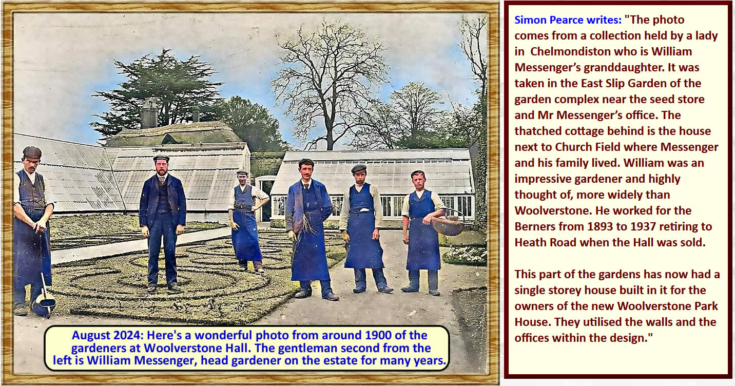 William was an impressive gardener and highly thought of, more widely than Woolverstone. He worked for the Berners from 1893 to 1937 retiring to Heath Road when the Hall was sold.