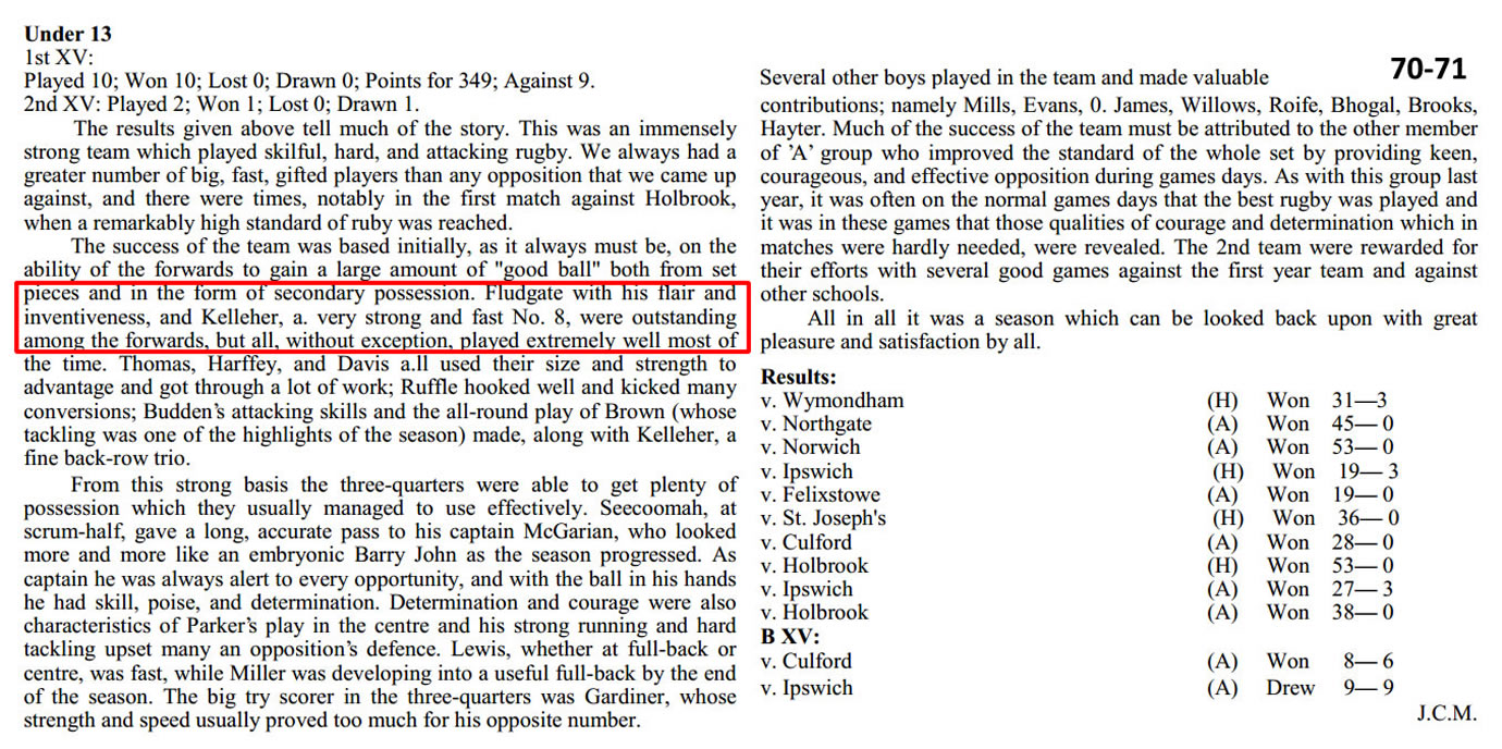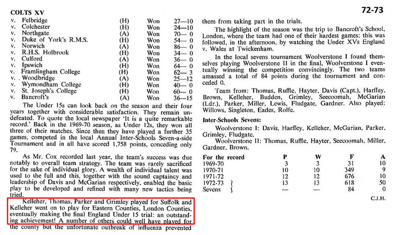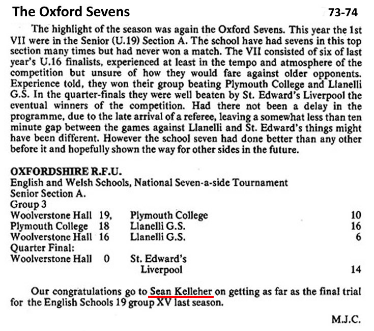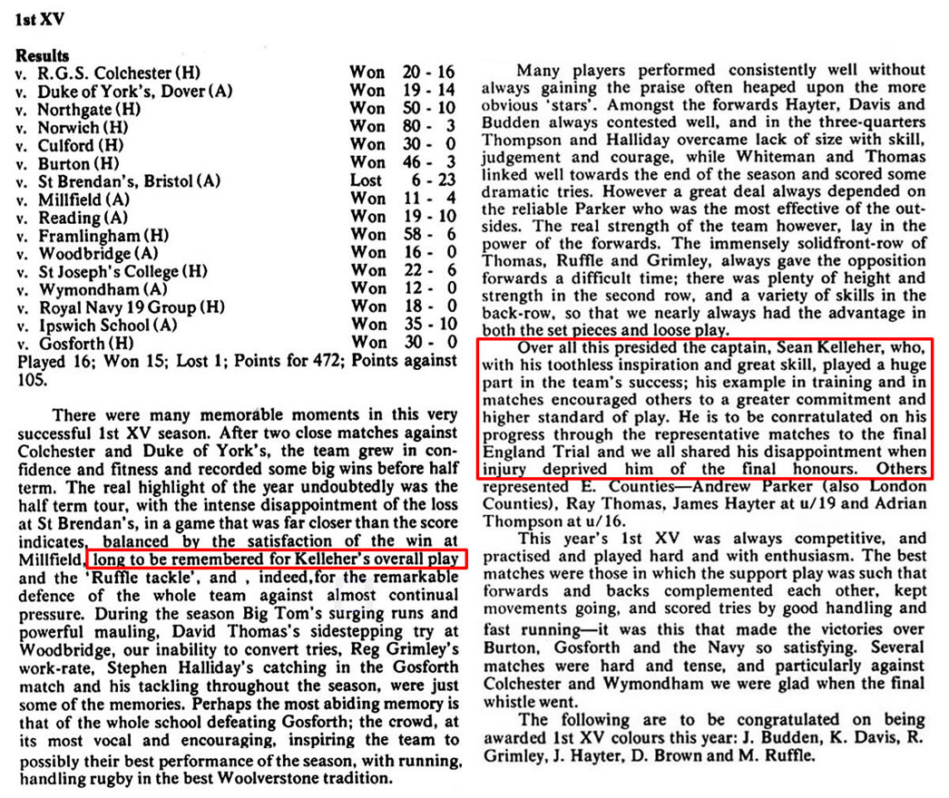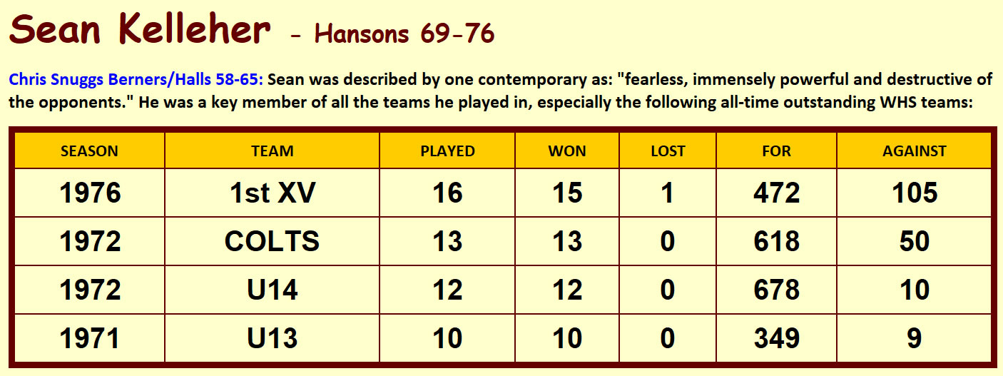 Rich. Davis - Orwell 60-67: !"I was selected to play for the Orwell senior team when I was in the 2nd year. In our game against Halls (I think) at one point I was the last man between Sean and the tryline, I just closed my eyes and hoped for the best, he must have taken pity on me because I’m still alive to tell the tale. As a 12 year old he was just a man mountain to me and his reputation certainly preceded him." |