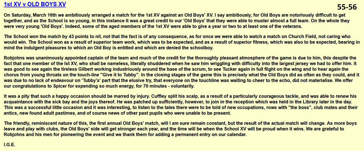1st OLD BOYS TEAM v Woolverstone Hall 1956