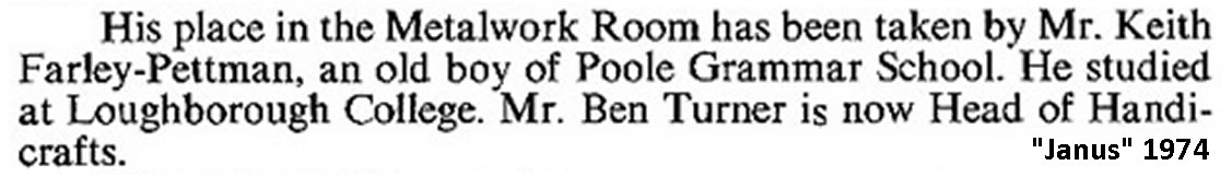 old boy of Poole Grammar School - replaced Roy Hanson