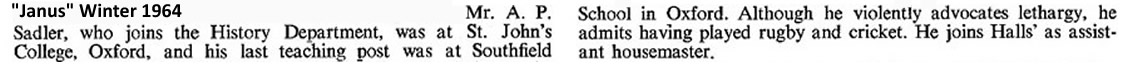 64-80 History - Asst. Hm. Halls 64-70 - Hm. Berners 70-90