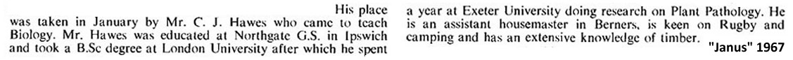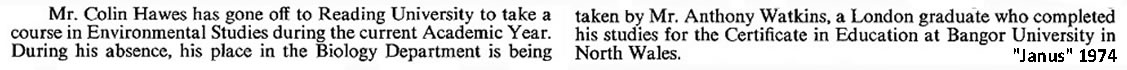 Colin J. Hawes : 1/76-90 Head of Biology - Sabbatical Year 74-75 - Asst. Hm. Hansons 75-4/76