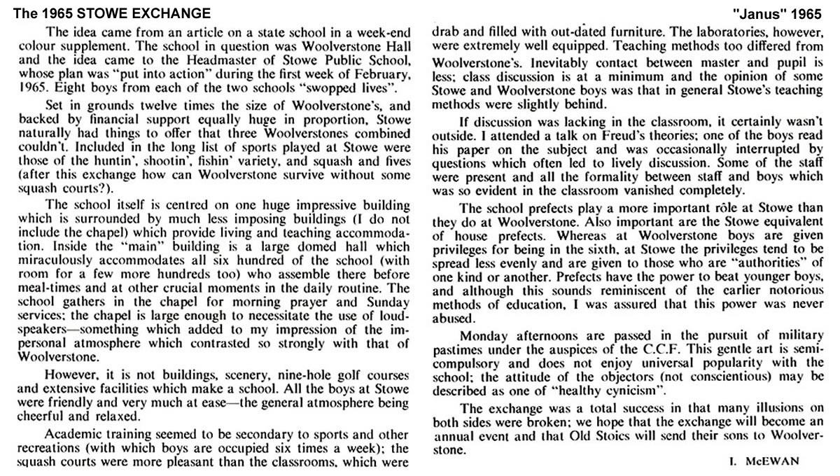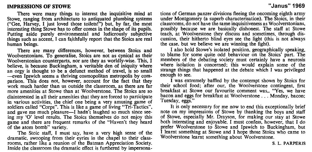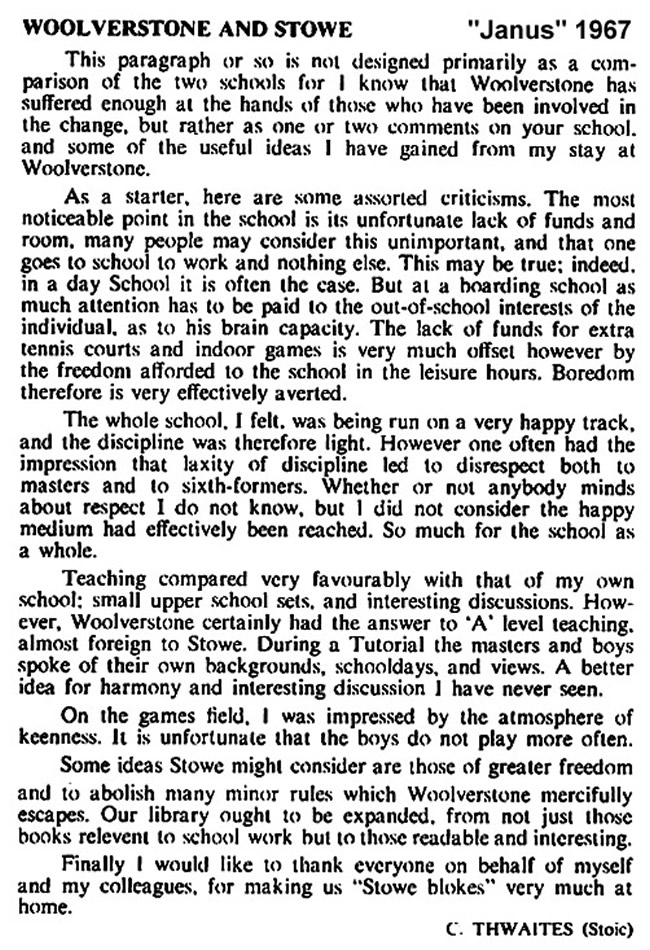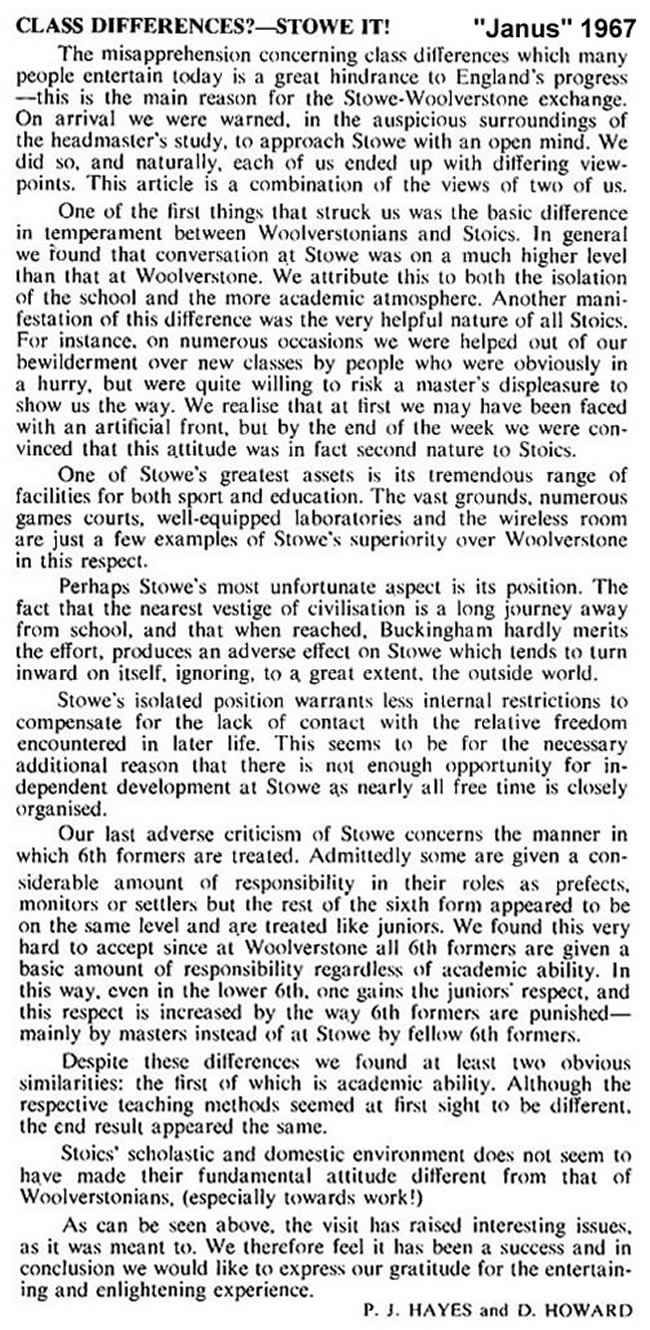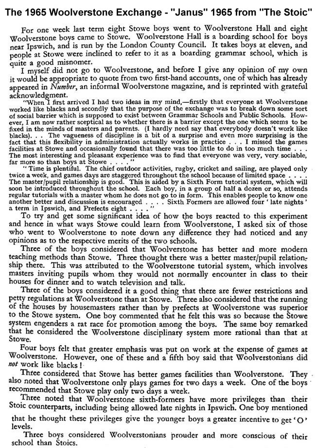 | The WHS House Structure Changes - CS | VIth Form Survey "Janus" 1968 | The STOWE SCHOOL Exchanges - CS | ||