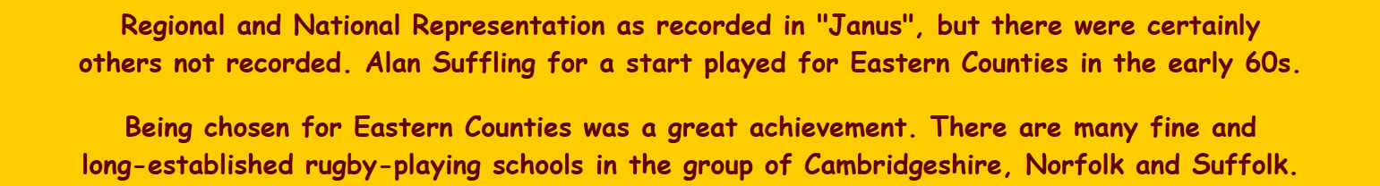 Bill Bauer - Halls 54-60 "I played for the Eastern Counties juniors. I was just taken by Taffy for a trial in Norwich. I played against Surrey as a wing forward. I can't remember where, just that it was pissing with rain and muddy. There was a mention in the local rag, which I have somewhere." |