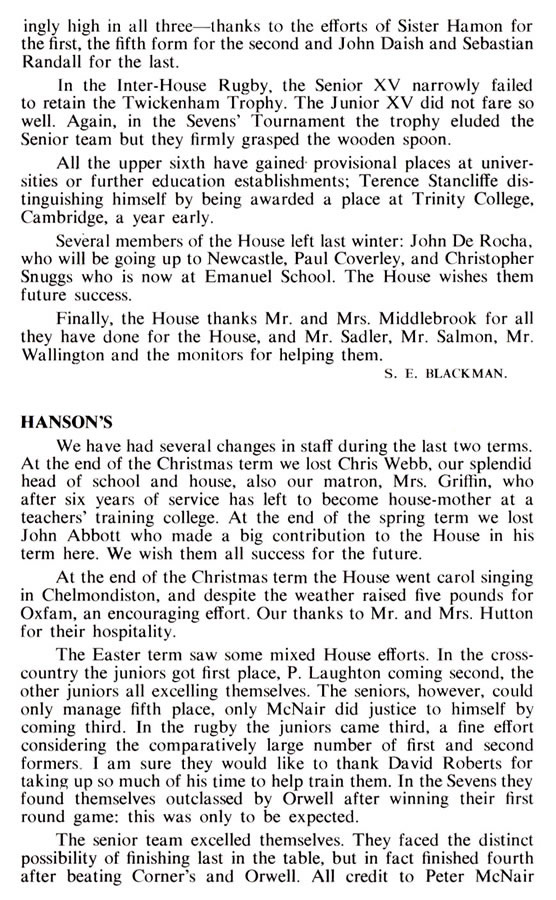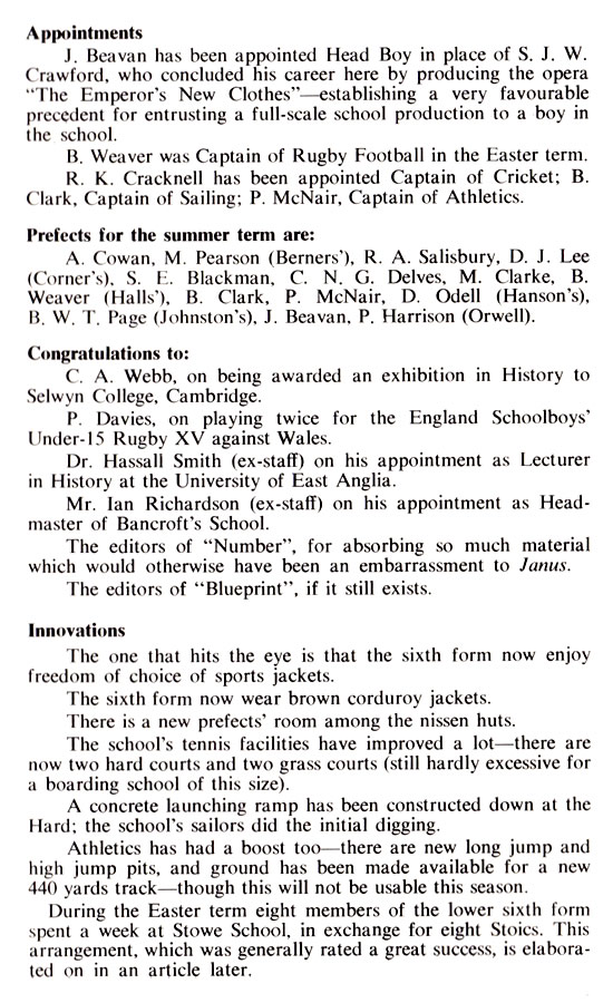 Head Boy's Letter