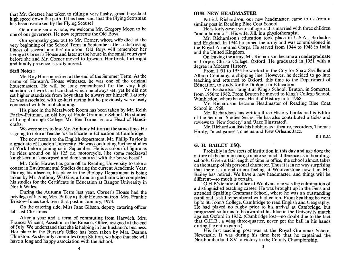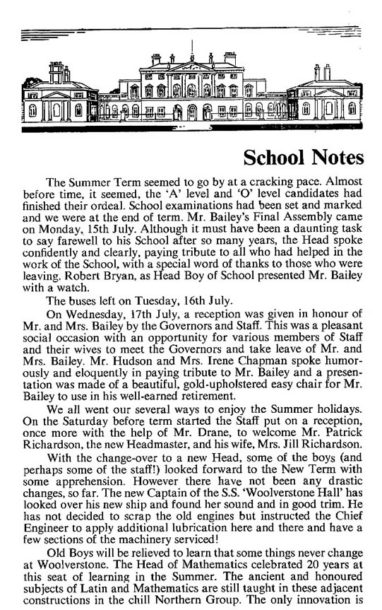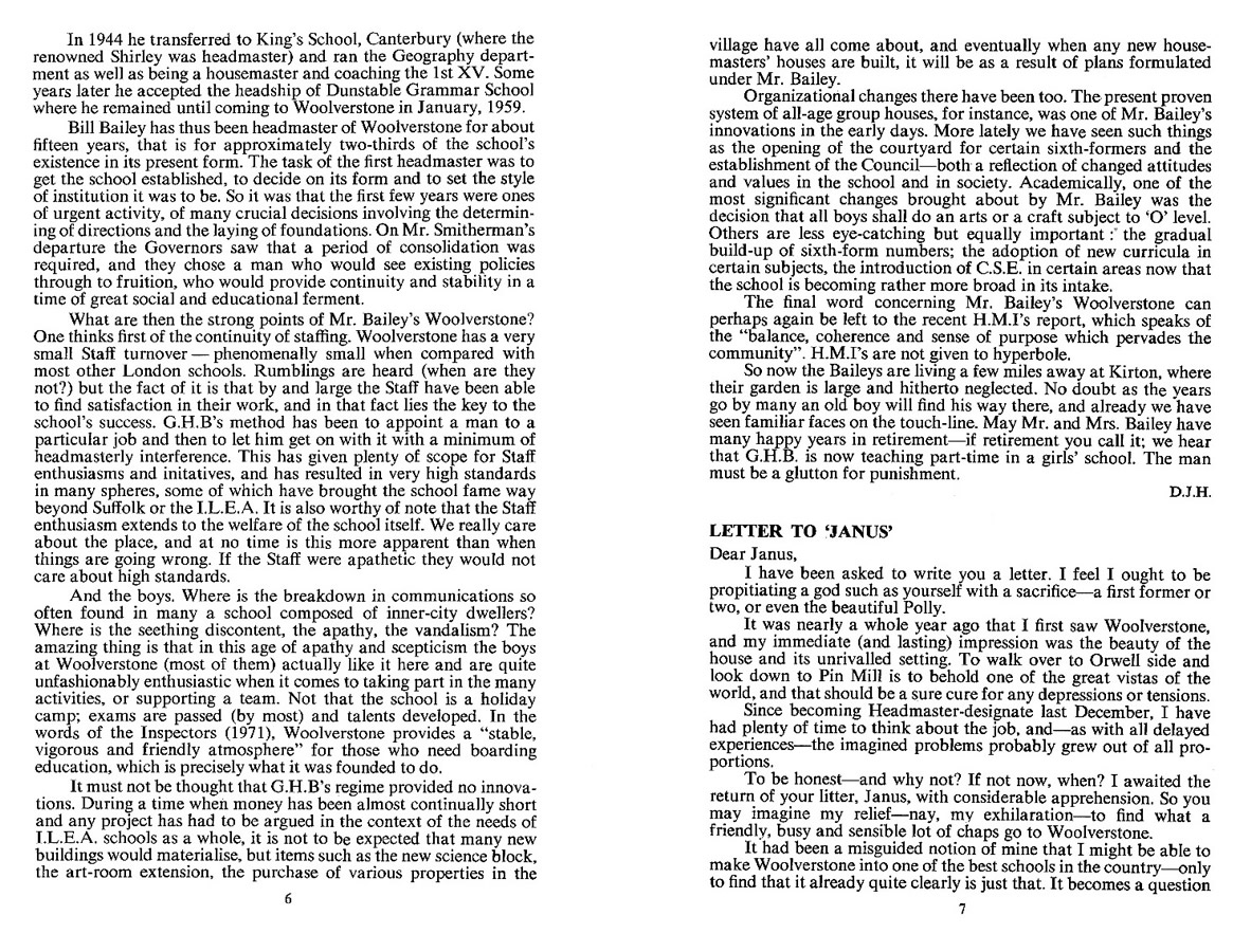 A SEPARATE TRIBUTE TO Mr G.H. Bailey, Headmaster WHS 1959-1974