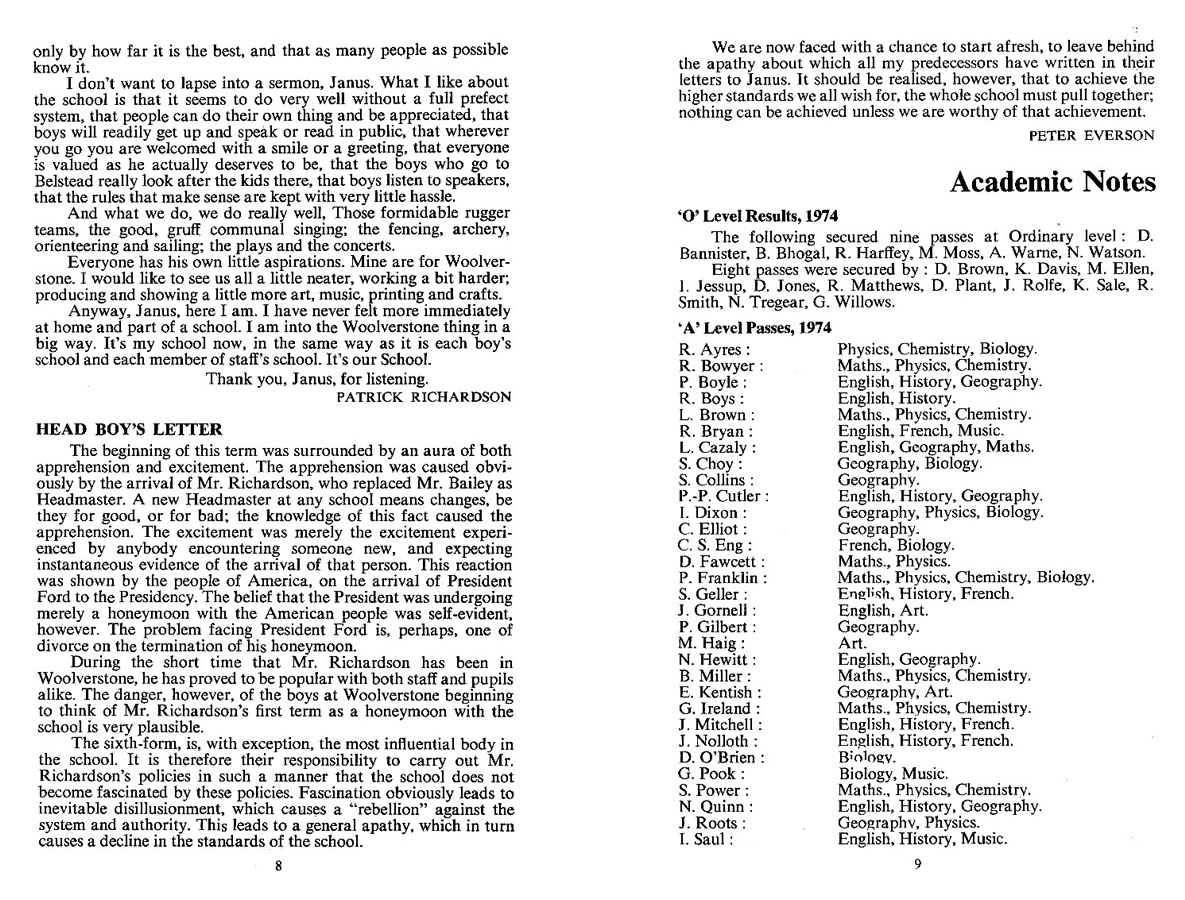 Head Boy's Letter