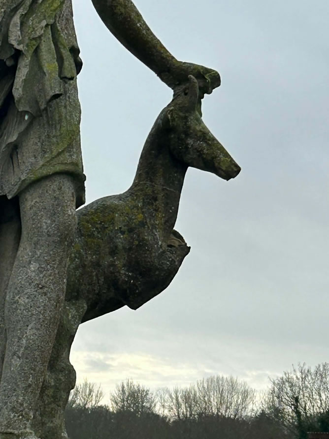 arrow is missing, the deer's forelegs are gone and various bits of the base